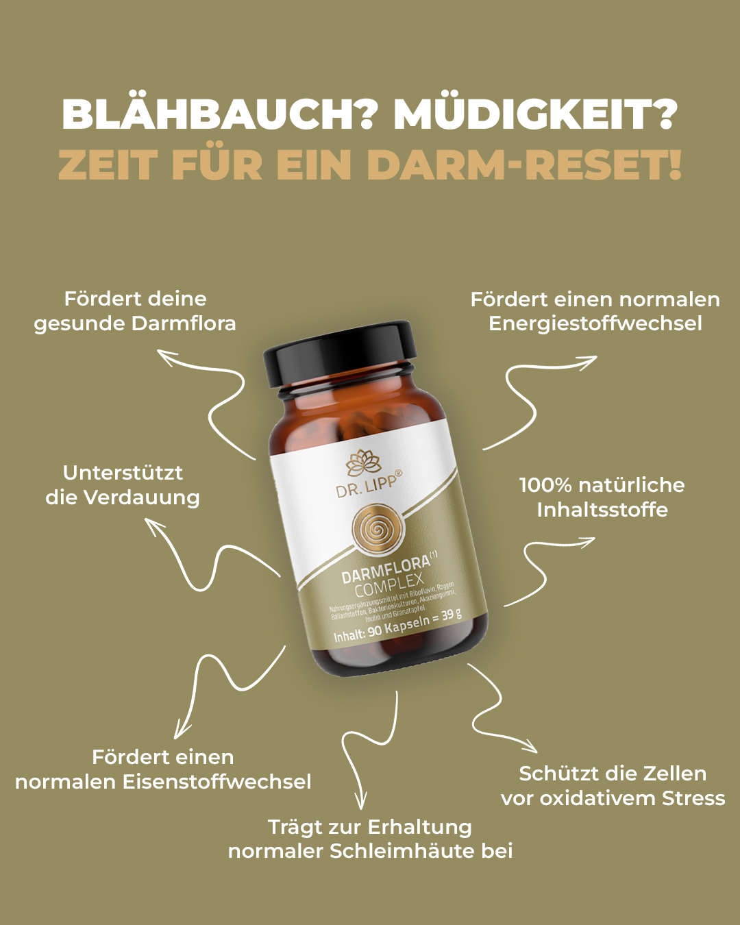 Durch unseren Darmkomplex werden dem Körper die notwendigen Lactobazillen von außen zugeführt, wodurch die Darmflora wieder aufgebaut wird.